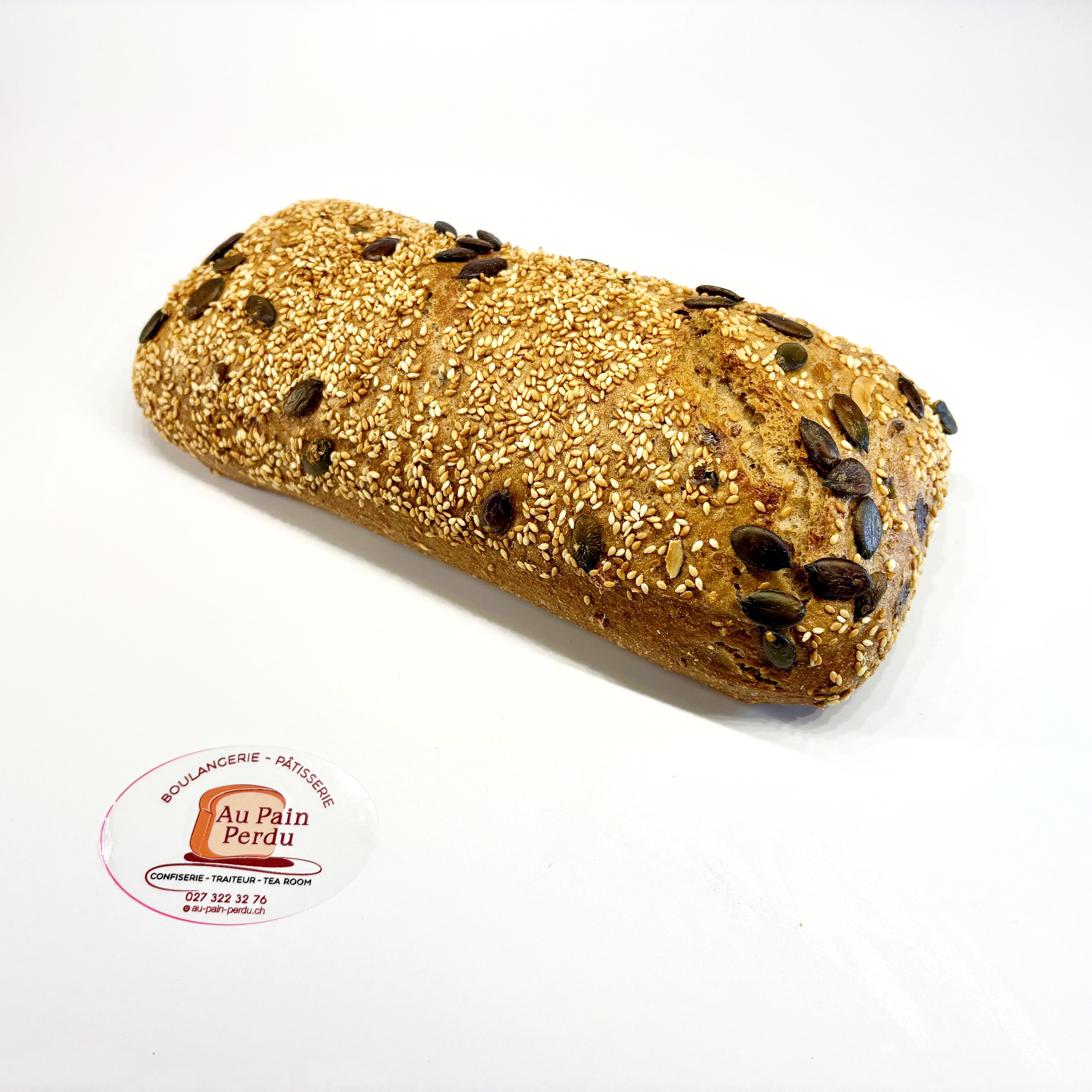 Confectionner avec de la farine mi-blanche torréfiée, de la farine bise et des graines de courges et de sésame grillées.